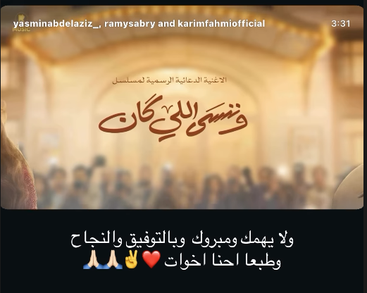 ونشرت ياسمين عبدالعزيز، تتر مسلسلها “وننسى اللي كان” عبر حسابها على “إنستجرام” بتعليق مازح: “كل اللي اتقال إشاعات أنا ورامي إخوات”.