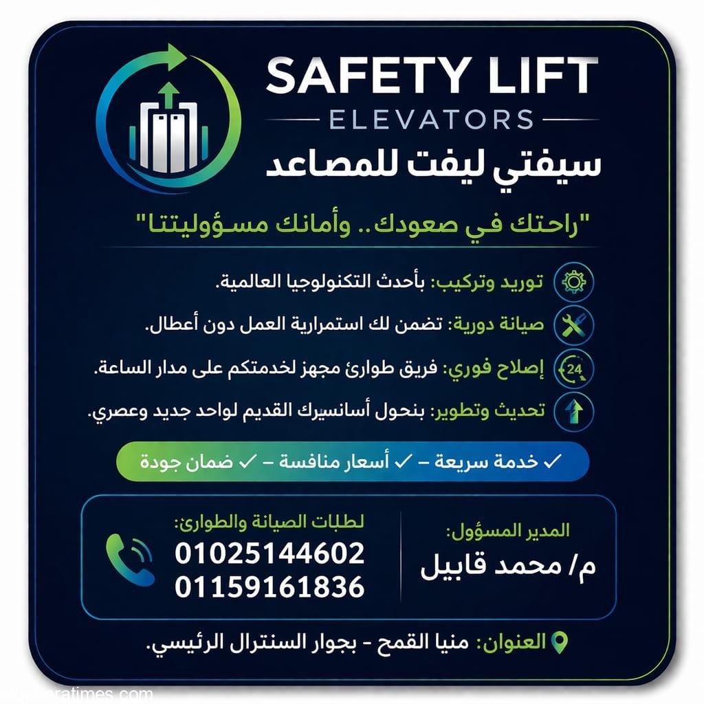 - دعم فني على مدار الساعة: تدرك “سيفتي لفت” أن عطل المصعد يعني توقف الحياة داخل المبنى، لذا توفر فريق صيانة متخصص يعمل على مدار 24 ساعة، مع سجل حافل من الاستجابة السريعة.